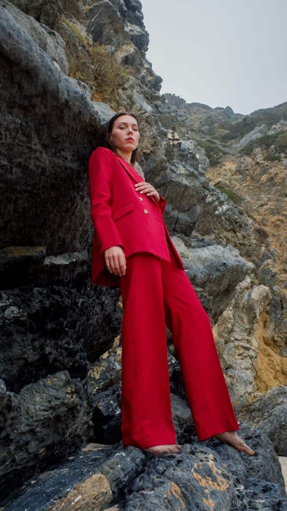 A button-up shirt with a fitted tweed blazer is a season-friendly option. Add matching trousers and loafers. It’s a simple outfit you can put together in minutes.